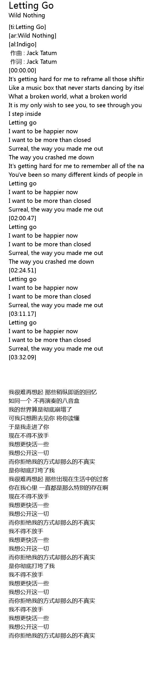 | [02:03.13] | Letting go |