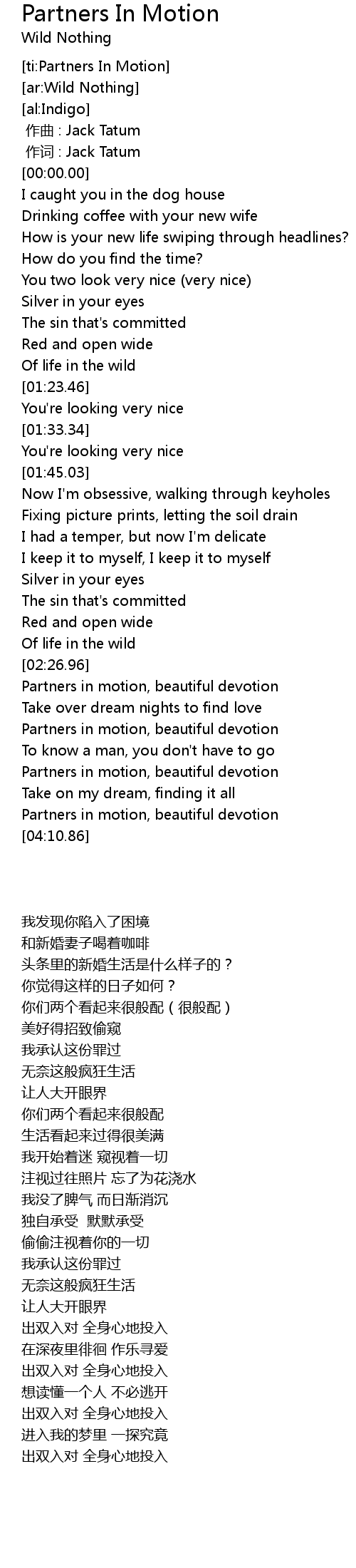 | [03:44.74] | Partners in motion, beautiful devotion |