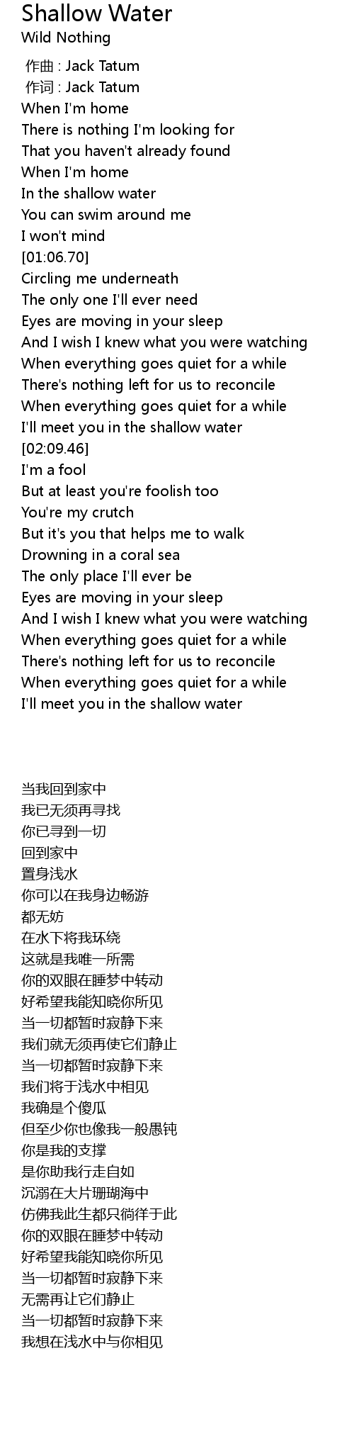 | [02:03.93] | I'll meet you in the shallow water |