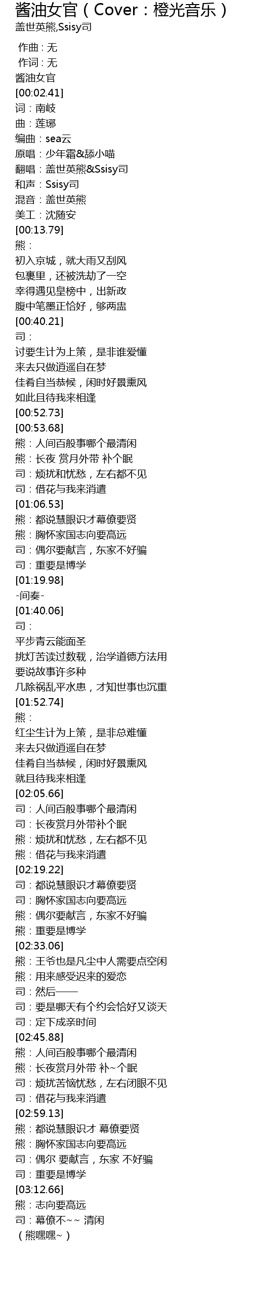 | [00:00.00] | 酱油女官 |