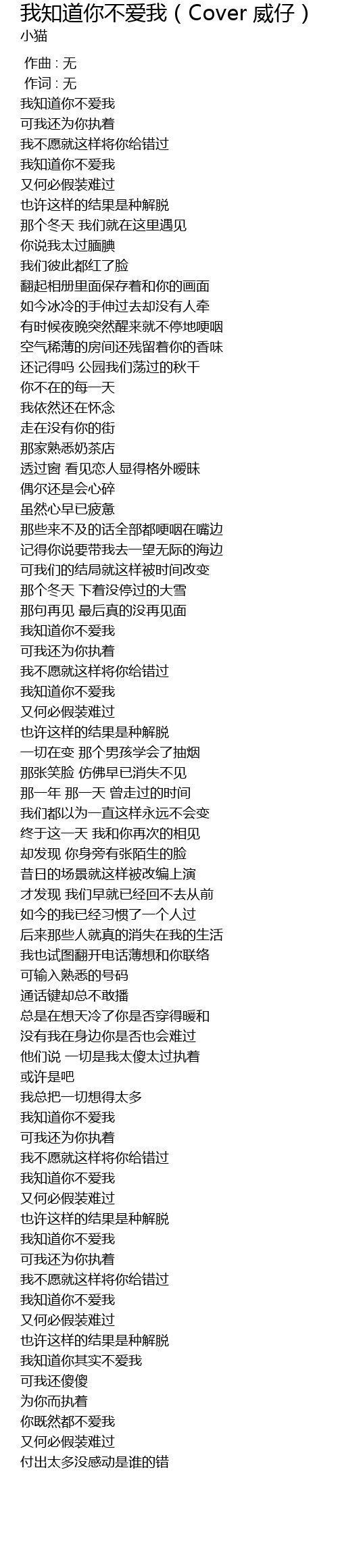 | [00:03.1] | wǒ zhī dào nǐ bù ài wǒ |