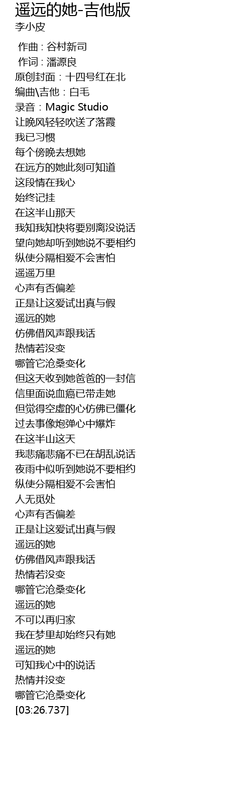 | Song | 遥远的她-吉他版 |