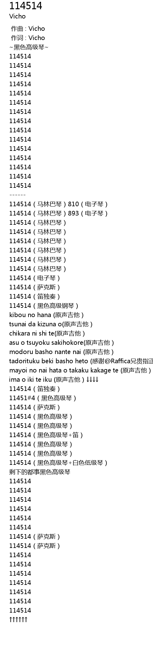 | [00:22.647] | 114514(马林巴琴)810(电子琴) |