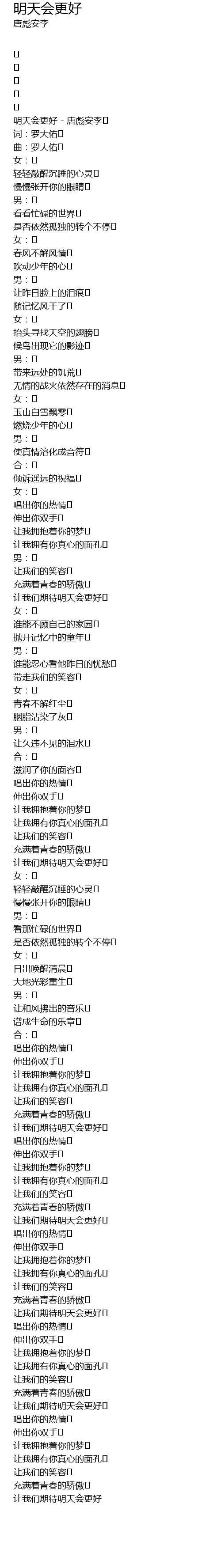 | míng tiān huì gèng hǎo táng biāo ān lǐ 13 | |
