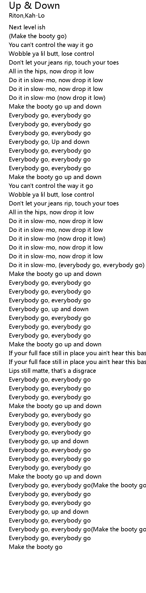 | [00:33.50] | Everybody go, Up and down |