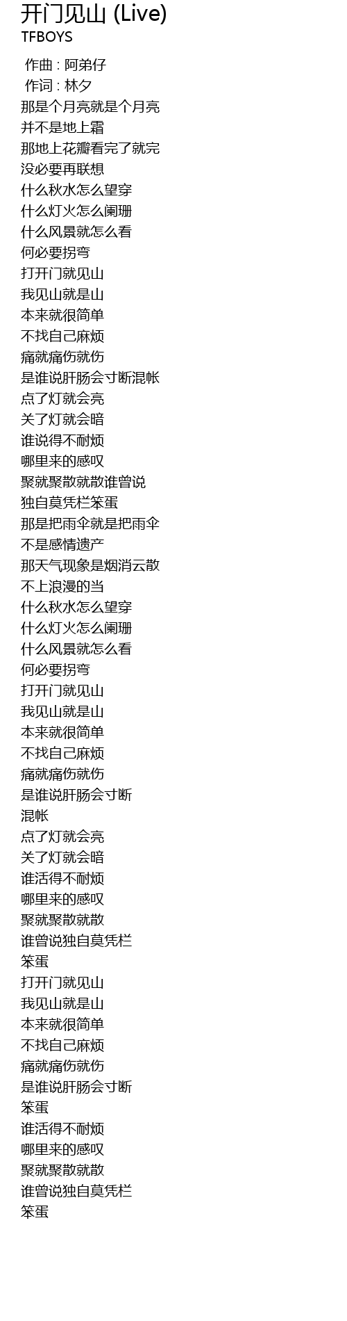 | Song | 开门见山 (Live) |