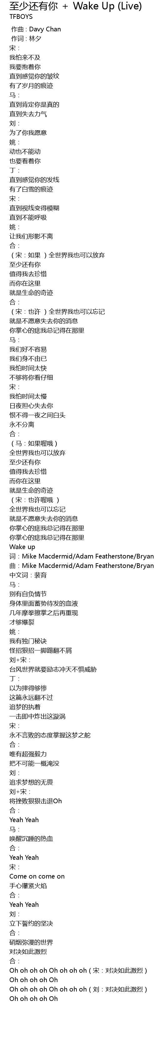 | Song | 至少还有你 + Wake Up (Live) |
