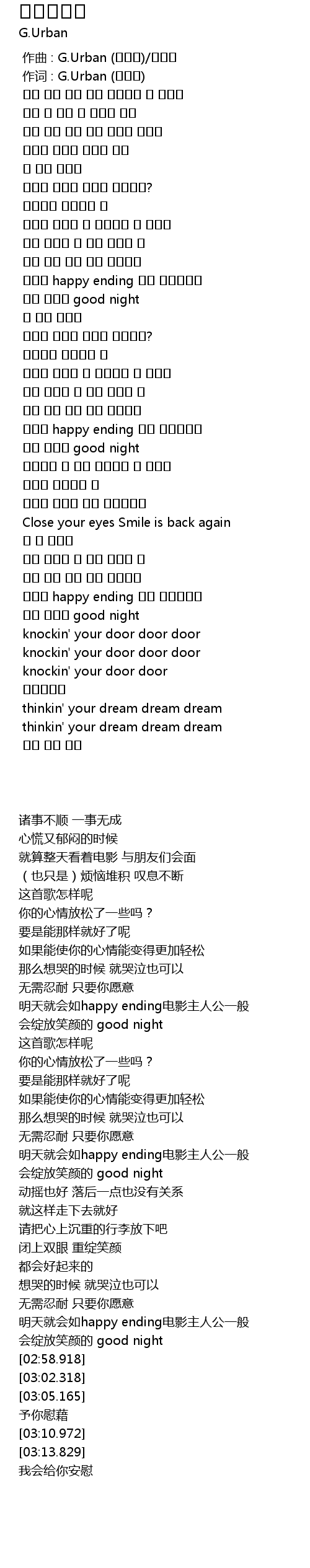 | [00:01.000] | 作词 : G.Urban (지어반) |