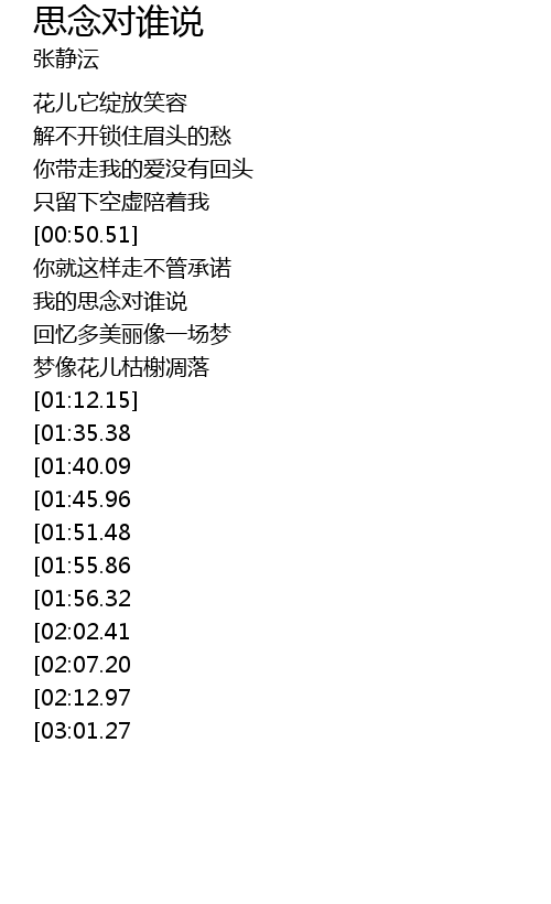 | [00:56.67] | wǒ de sī niàn duì shuí shuō |