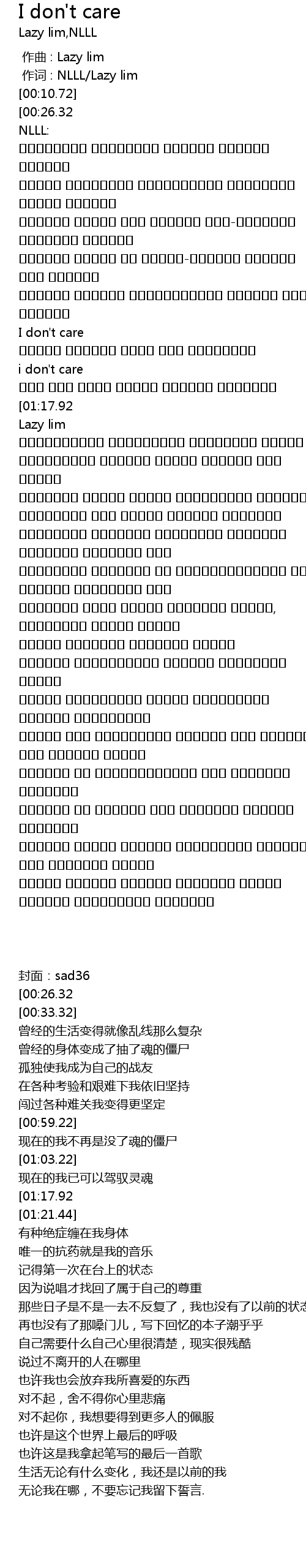 [00:01.000] 作词 : NLLL/Lazy lim