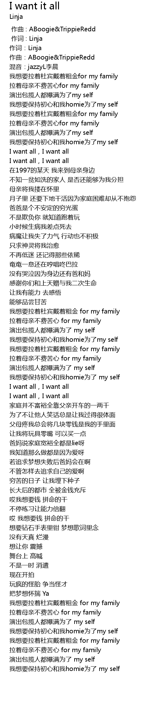 | [00:44.60] | I want all,I want all |