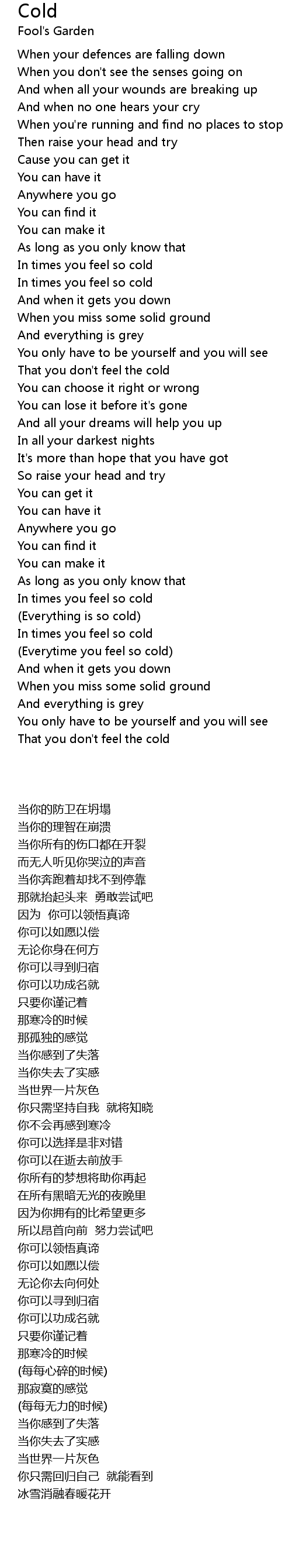 (Everytime you feel so cold) |