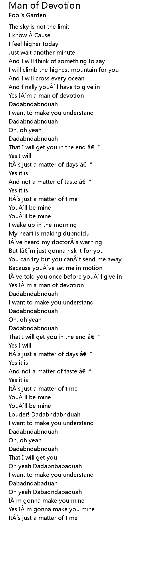 | Yes I´m a man of devotion | |