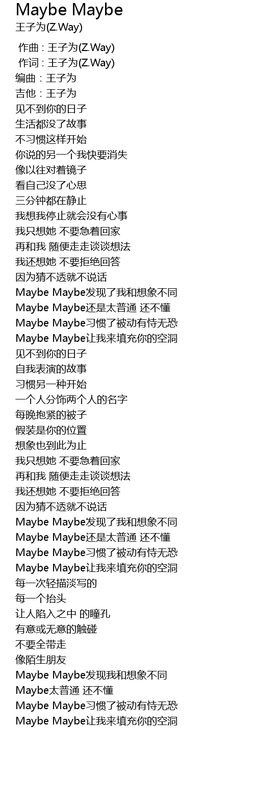 | [00:00.000] | zuo qu : wang zi wei Z. Way |