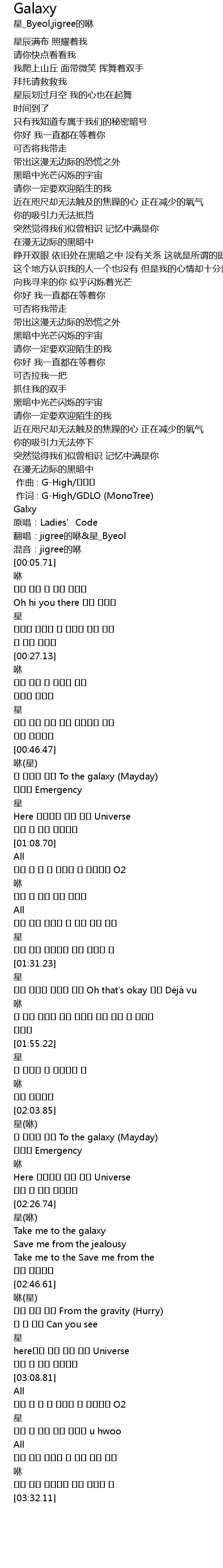 | [00:47.14] | 날 데려가 줄래 To the galaxy (Mayday) |