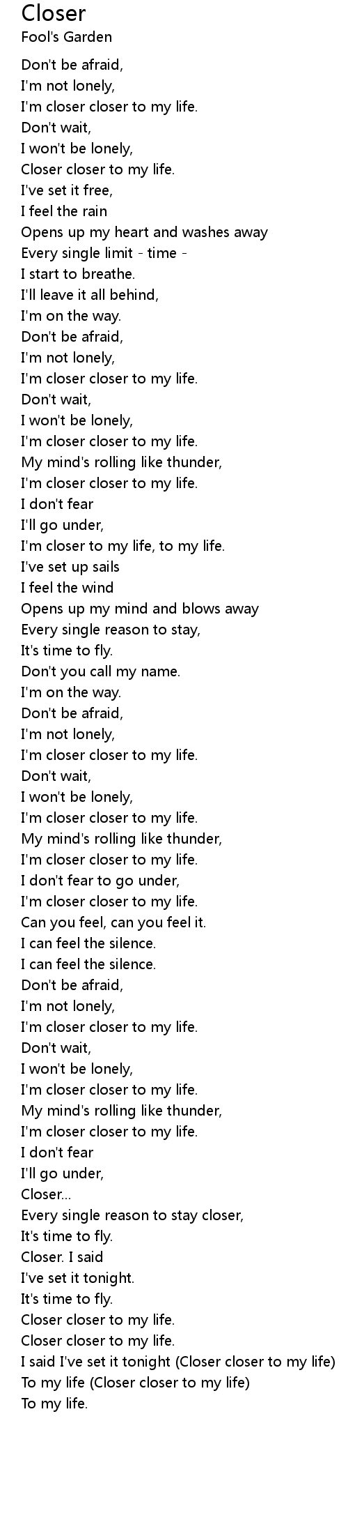 I'm closer closer to my life.