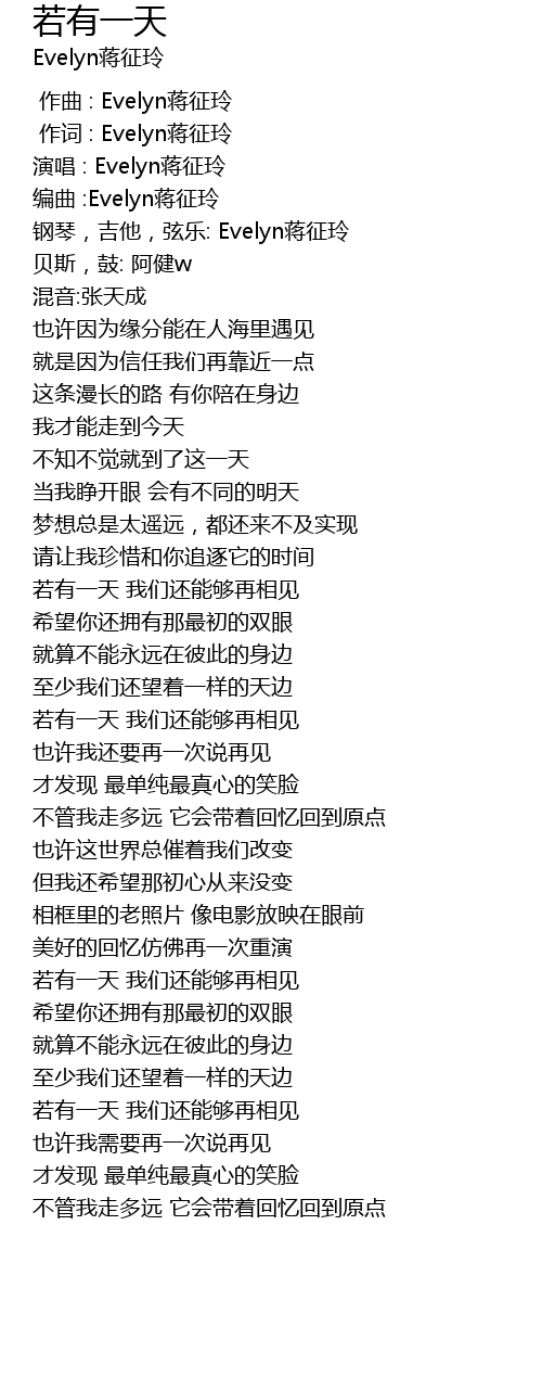 | [00:01.000] | 作词 : Evelyn蒋征玲 |