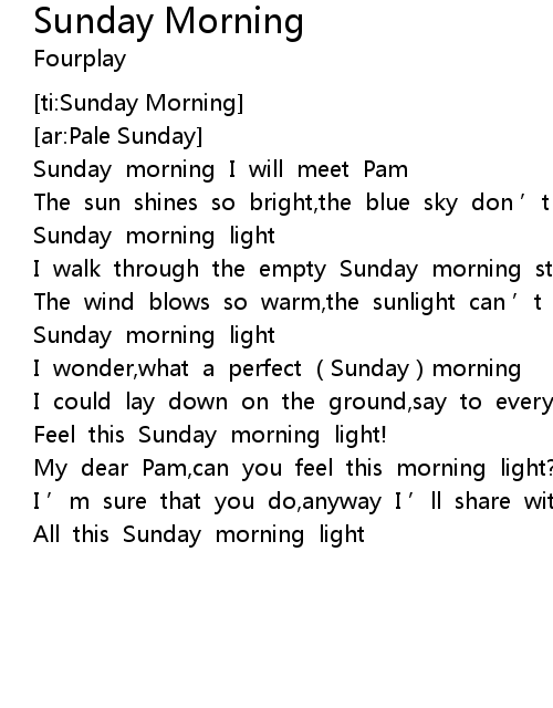 | [00:49.637] | I wonder, what a perfect Sunday morning |
