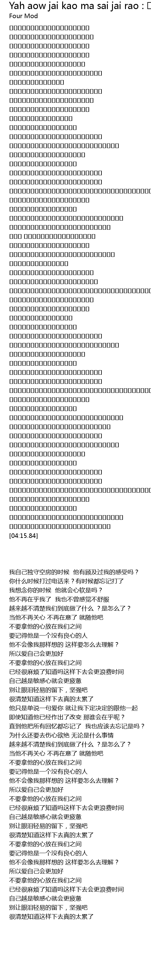 Yah aow jai kao ma sai jai rao : อย่าเอาใจเขามาใส่ในเรา Yah aow jai kao ma sai jai rao : Lyrics