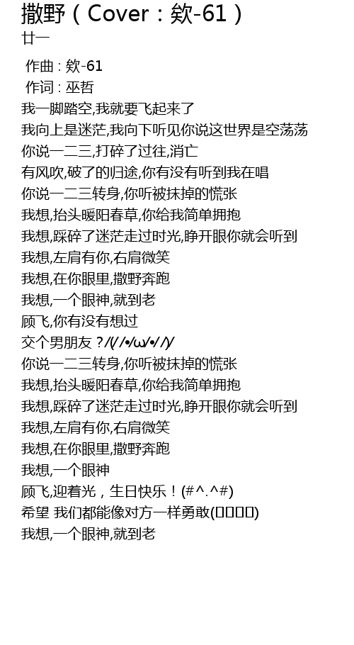 | [03:19.54] | 顾飞,迎着光,生日快乐!(#^.^#) |