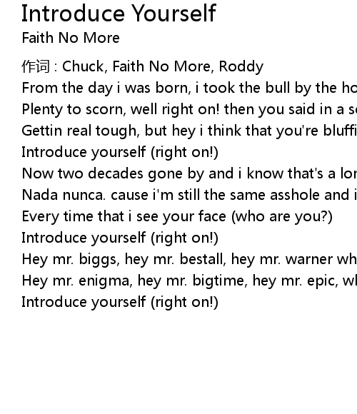 | zuò cí : Chuck, Faith No More, Roddy | |