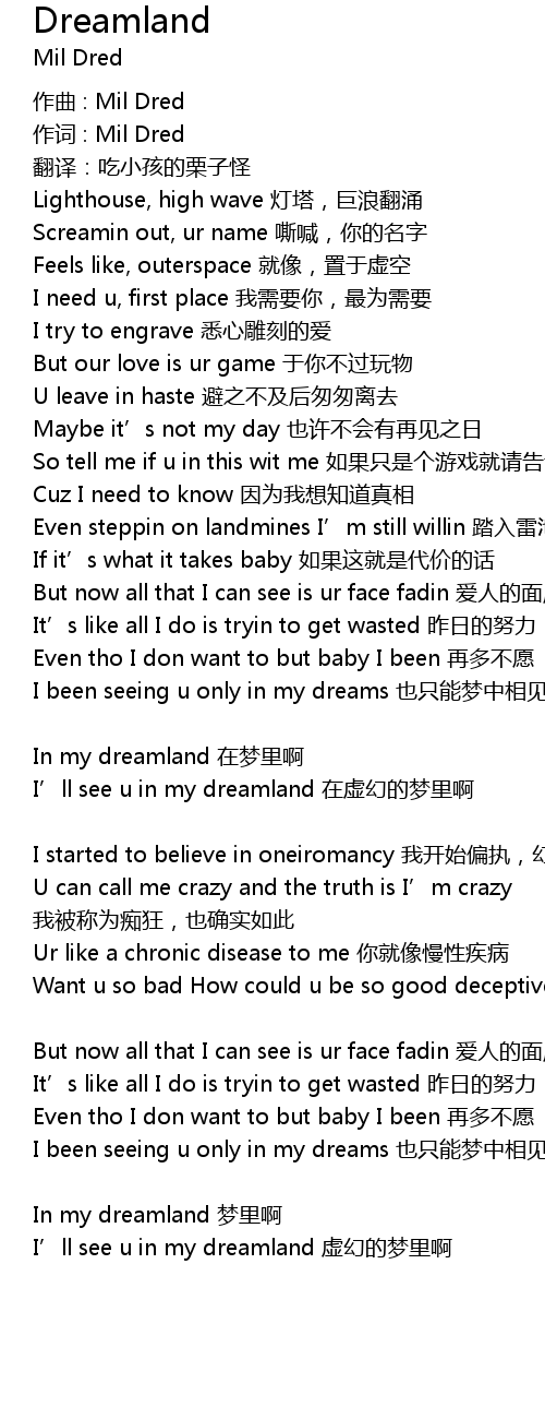 | I’ll see u in my dreamland 虚幻的梦里啊 |