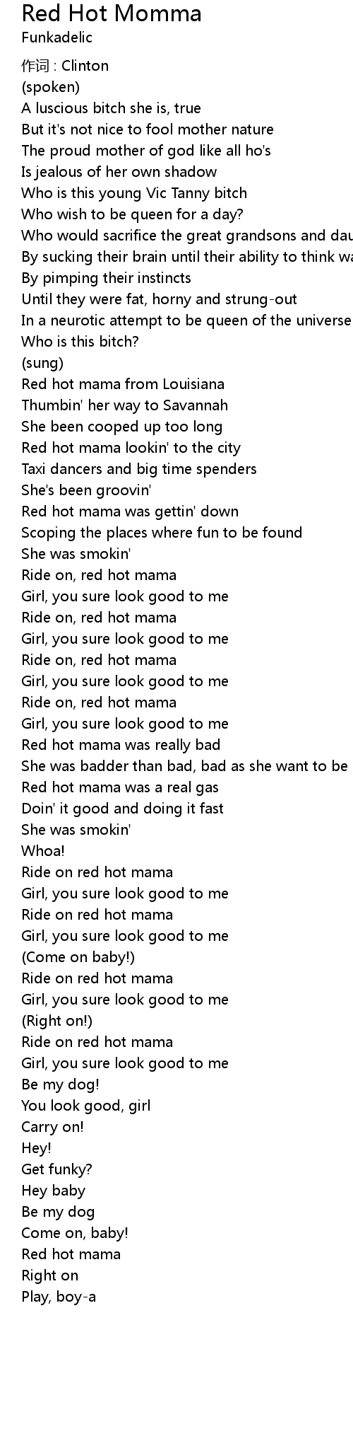 | Ride on red hot mama | |
