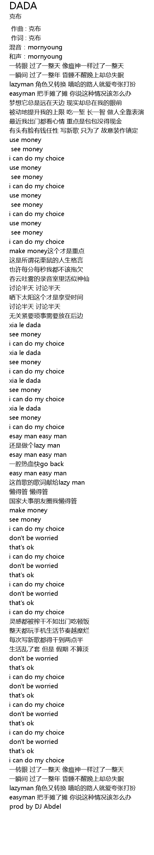 | [01:42.28] | zhè shǒu gē de gē cí xiàn gěi lazy man |