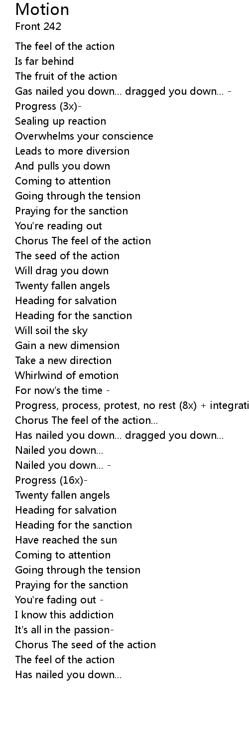| Progress, process, protest, no rest (8x) + integration of "Feel..." | |