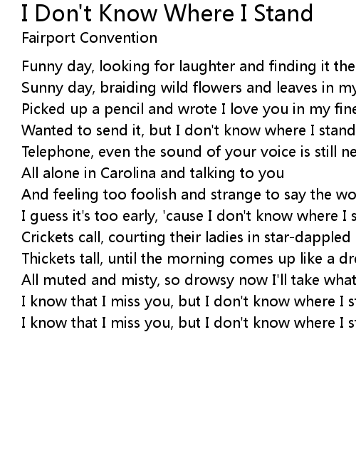 I Don't Know Where I Stand Lyrics
