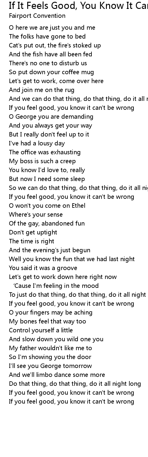 | Song | If It Feels Good, You Know It Can't Be Wrong |