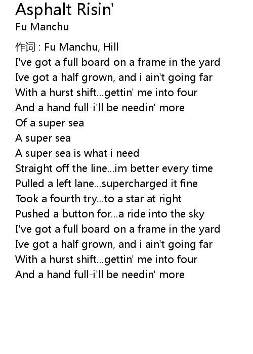 | 作词 : Fu Manchu, Hill | |