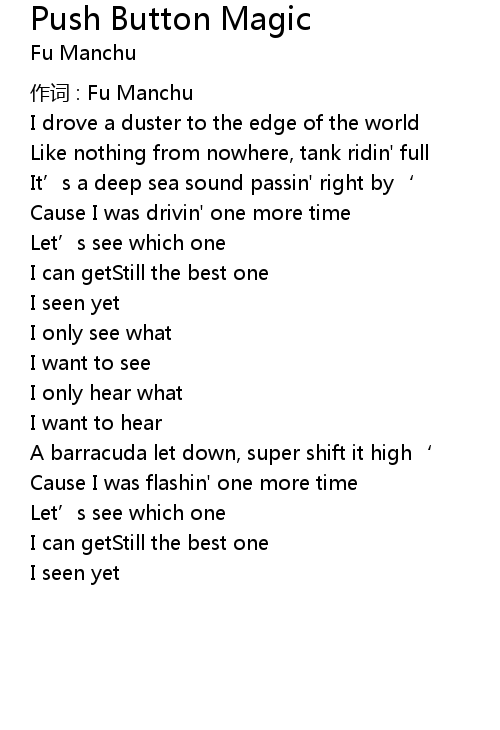 | 作词 : Fu Manchu | |