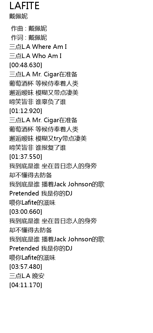 | [03:29.650] | wei ni Lafite de zi wei |