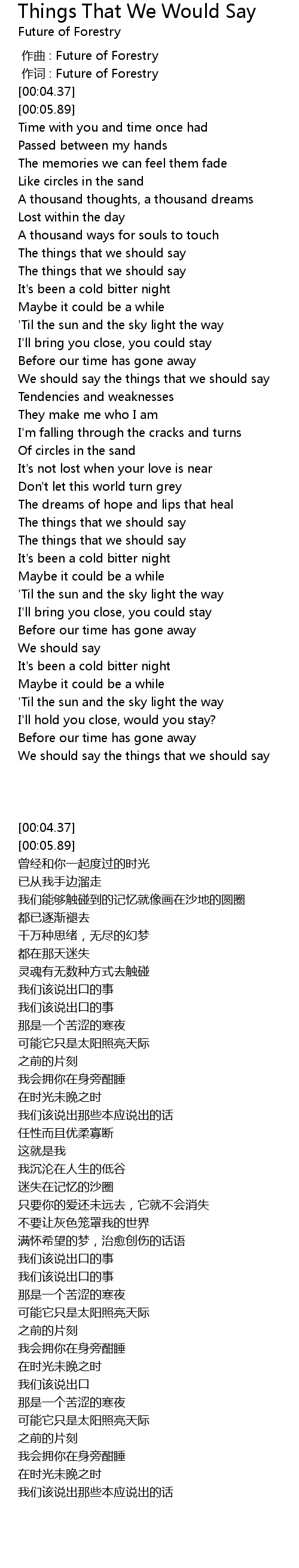 | [00:00.00] | zuò qǔ : Future of Forestry |
