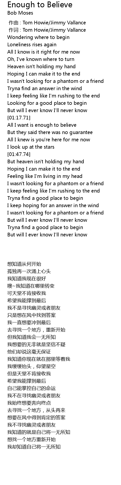 | [00:01.000] | zuò cí : Tom Howie Jimmy Vallance |