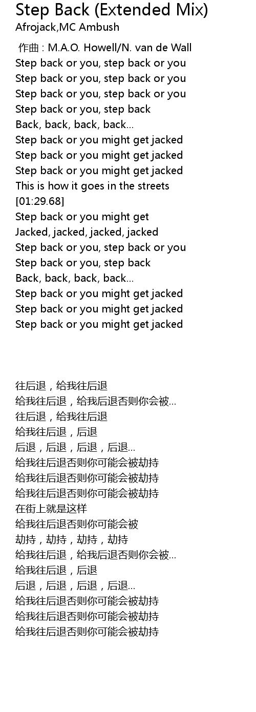| [00:43.48] | Step back or you might get jacked |