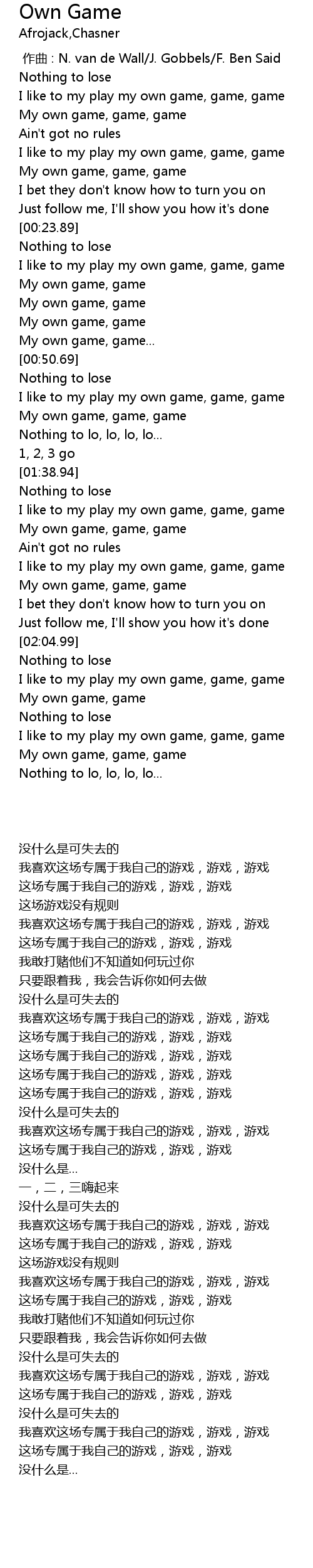| [01:55.53] | My own game, game, game |