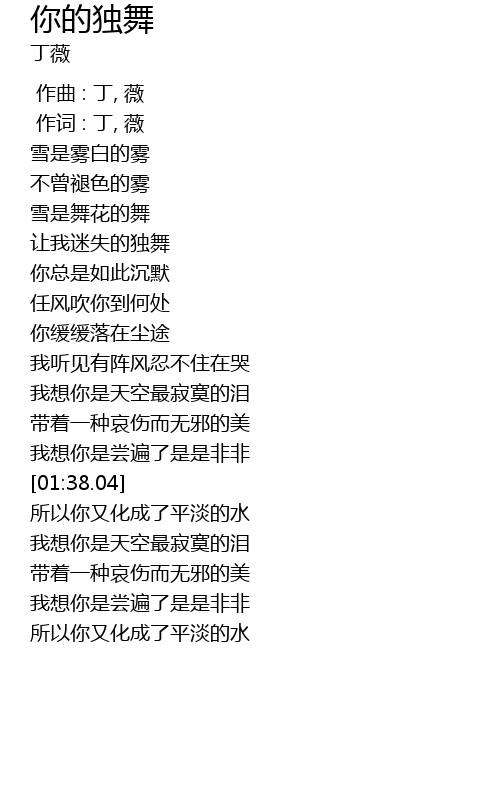 | [00:01.00] | 作词 : 丁, 薇 |