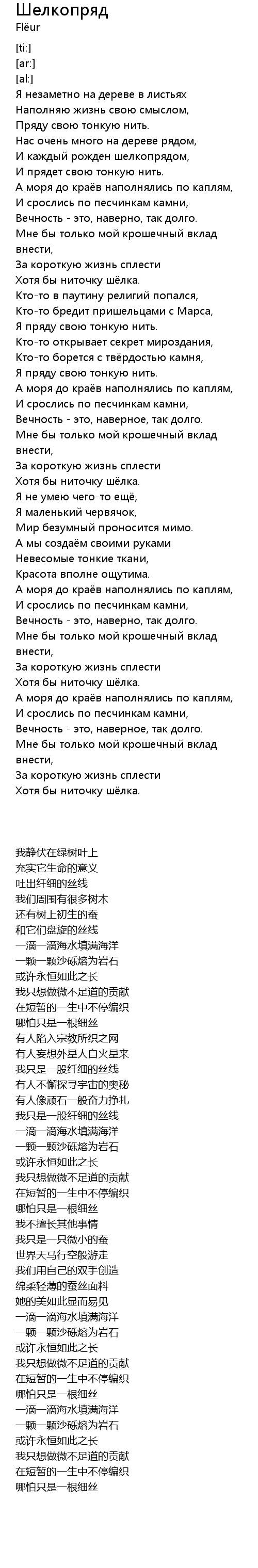Я пряду свою тонкую нить. |