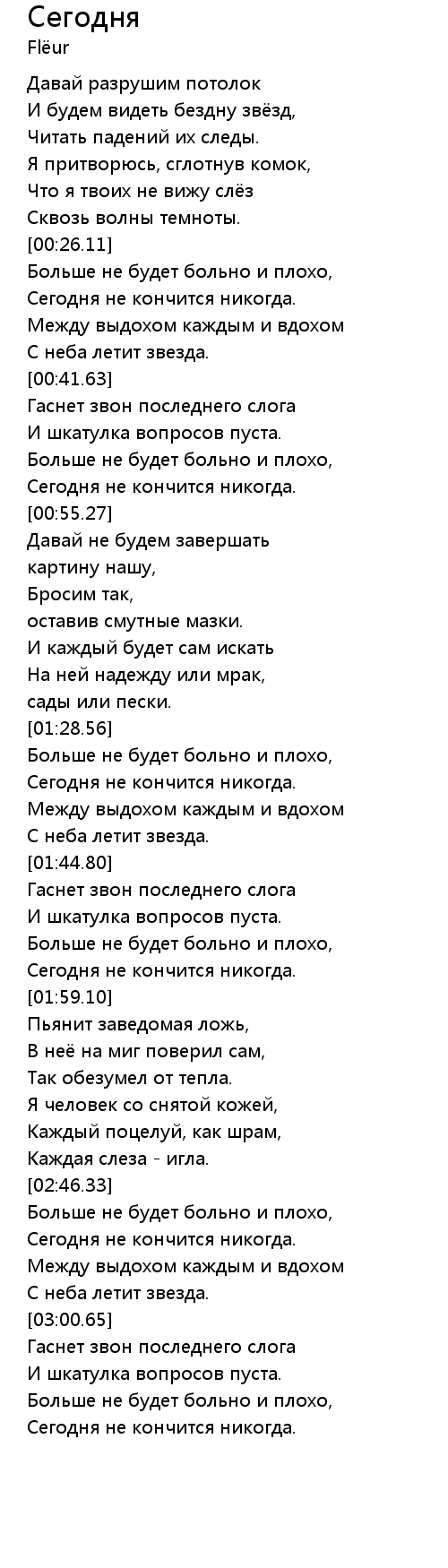 Сегодня не кончится никогда. |