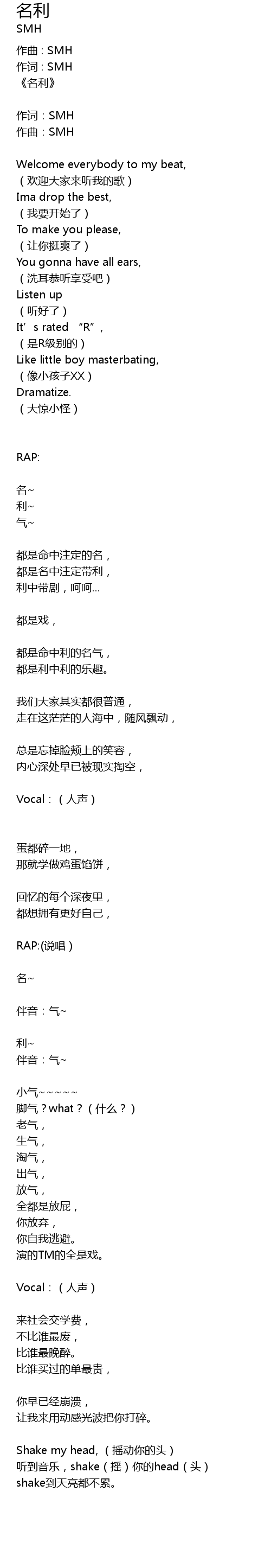 | 作词:SMH | |