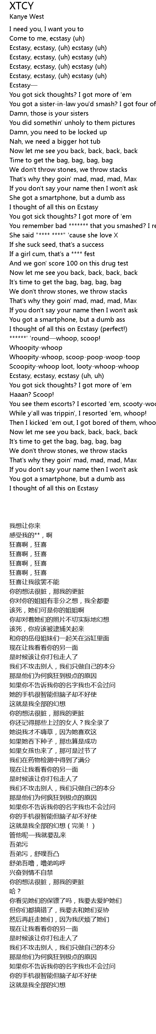 | [01:22.49] | She said "**** ****" 'cause she love X |