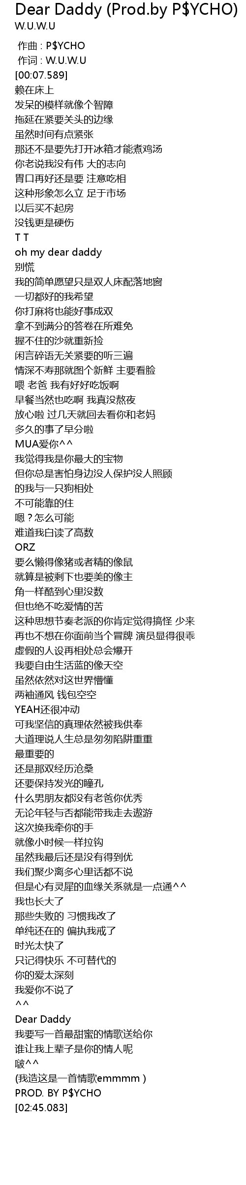 | Song | Dear Daddy (Prod.by P$YCHO) |