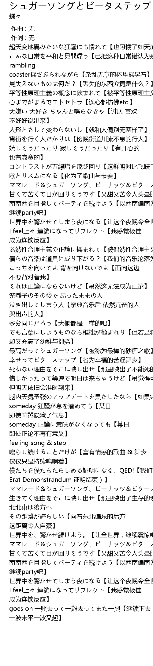 | [02:03.65] | 最高だってシュガーソング【被称为最棒的砂糖之歌】 |