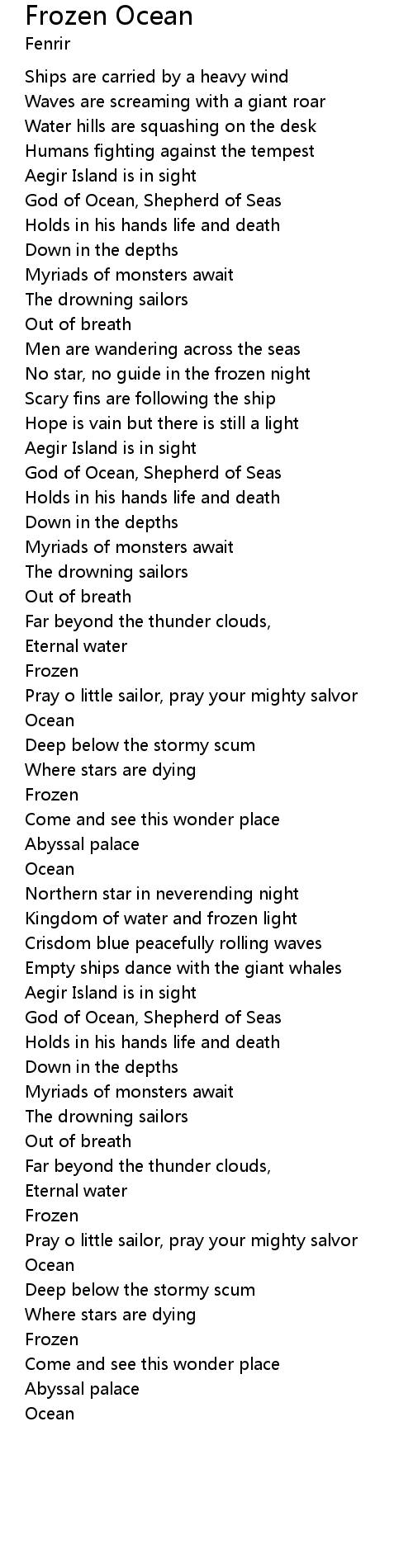 Frozen Ocean Lyrics