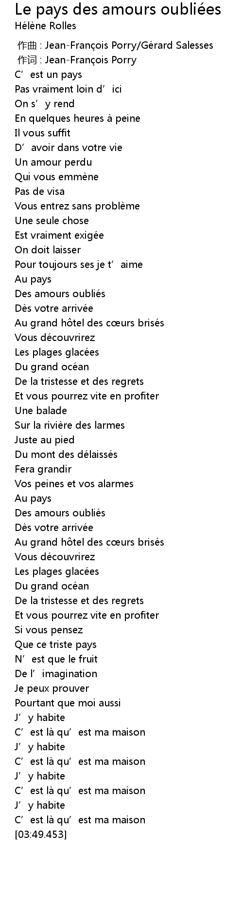 | [00:55.021] | Des amours oubliés |