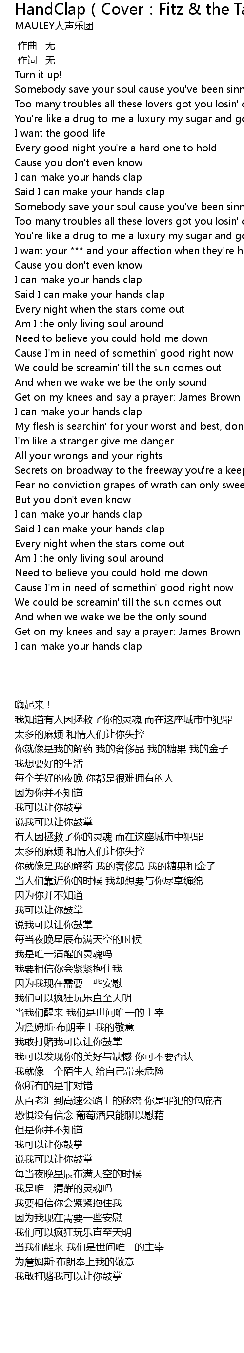 | Song | HandClap(Cover:Fitz & the Tantrums) |