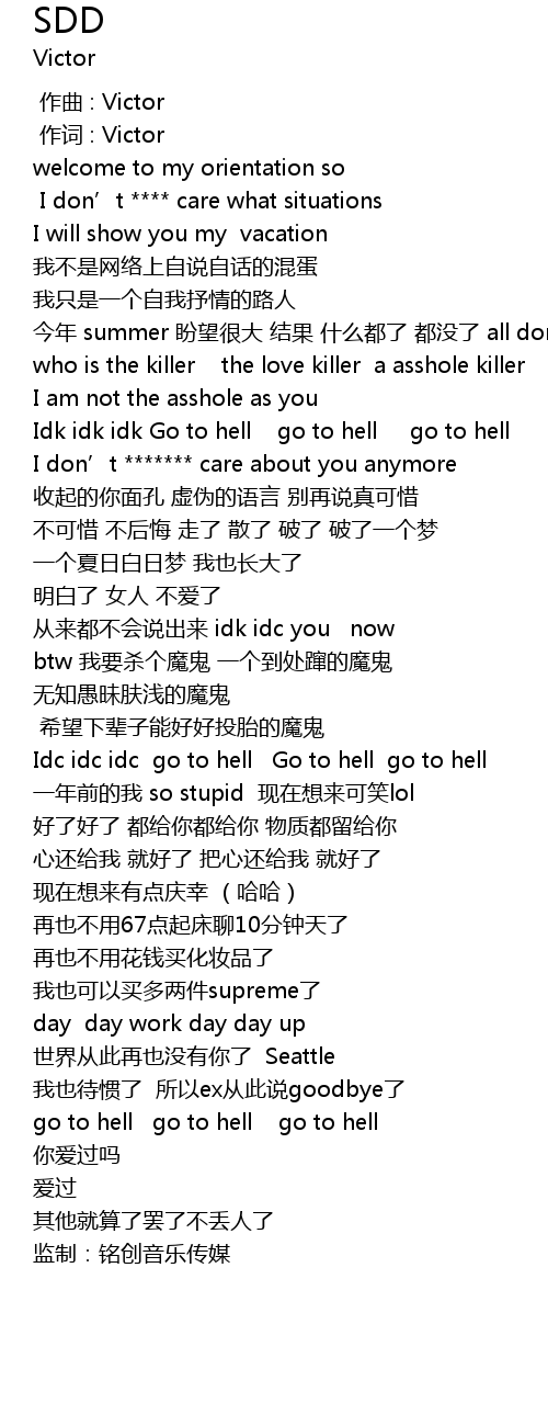| [01:07.84] | Idc idc idc go to hell Go to hell go to hell |