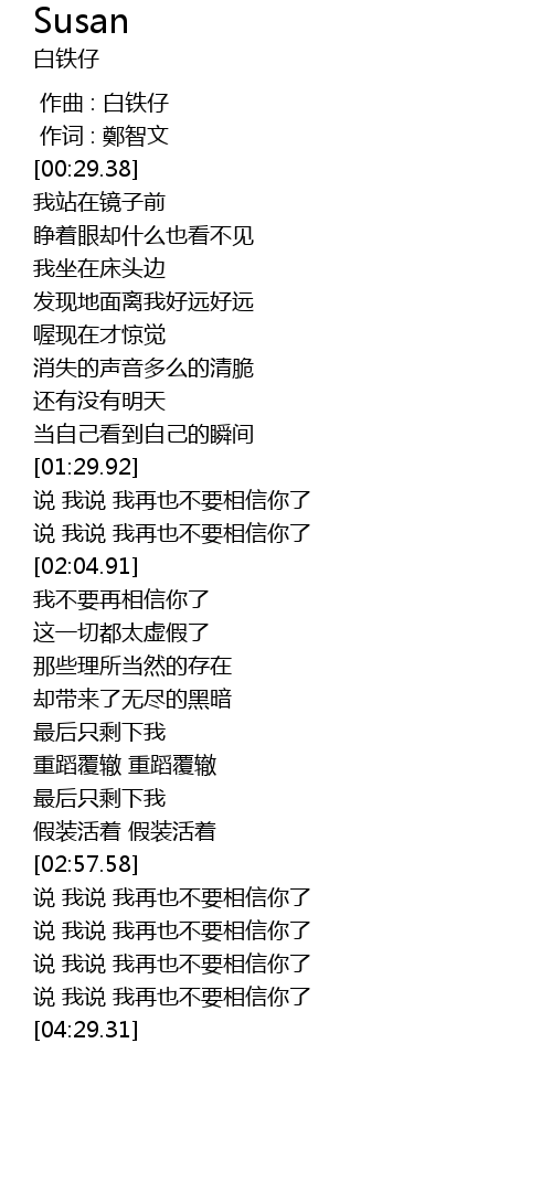 | [04:15.95] | 说 我说 我再也不要相信你了 |
